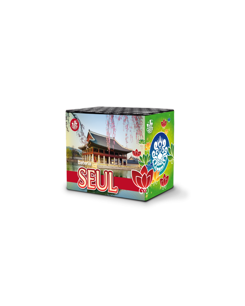 0641 Batterie Droite, 30 mm, 35 coups, 40 s, Seúl, Bombes rouges et vertes avec des effets rouge, vert, bleu et blanc avec craker.